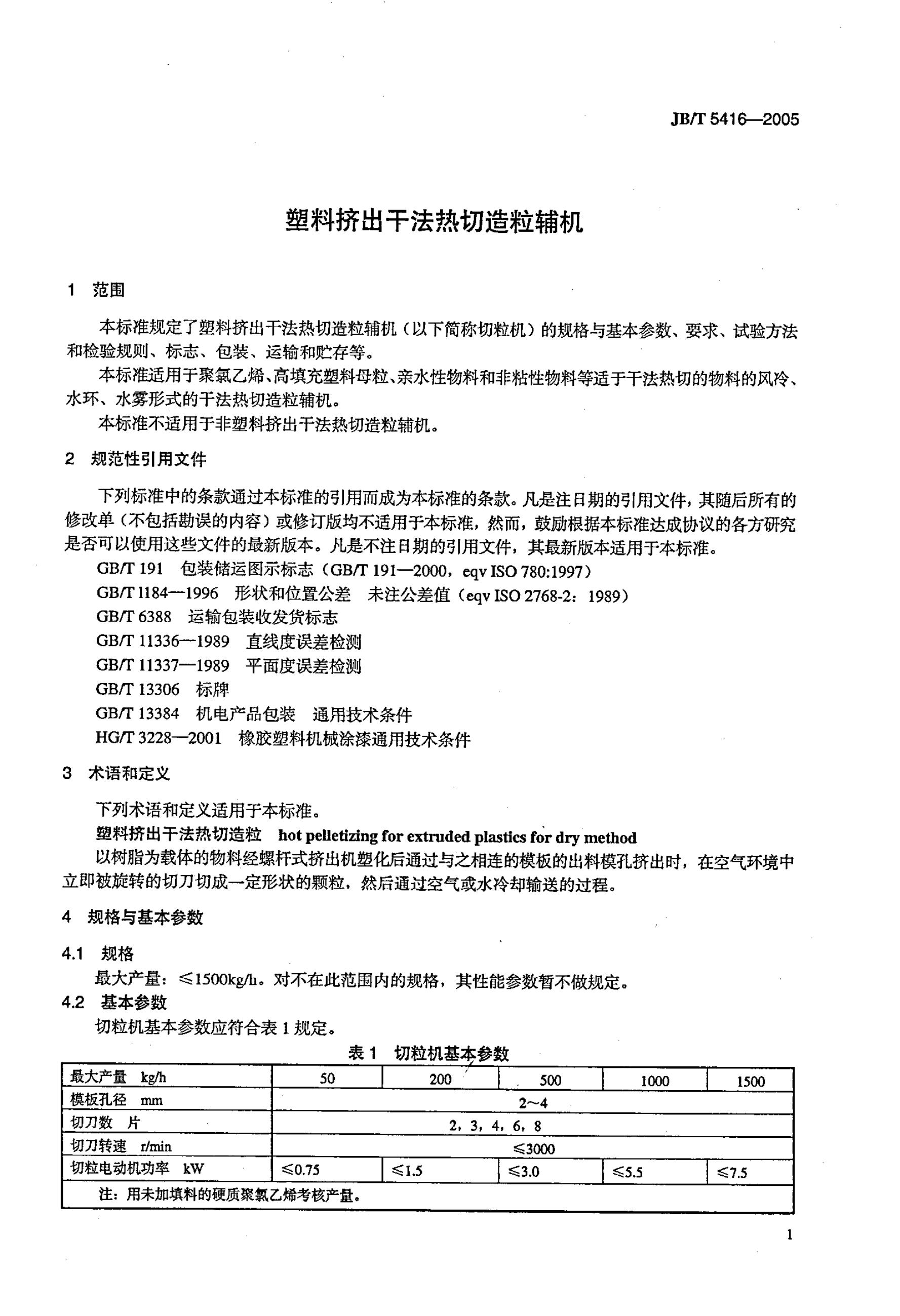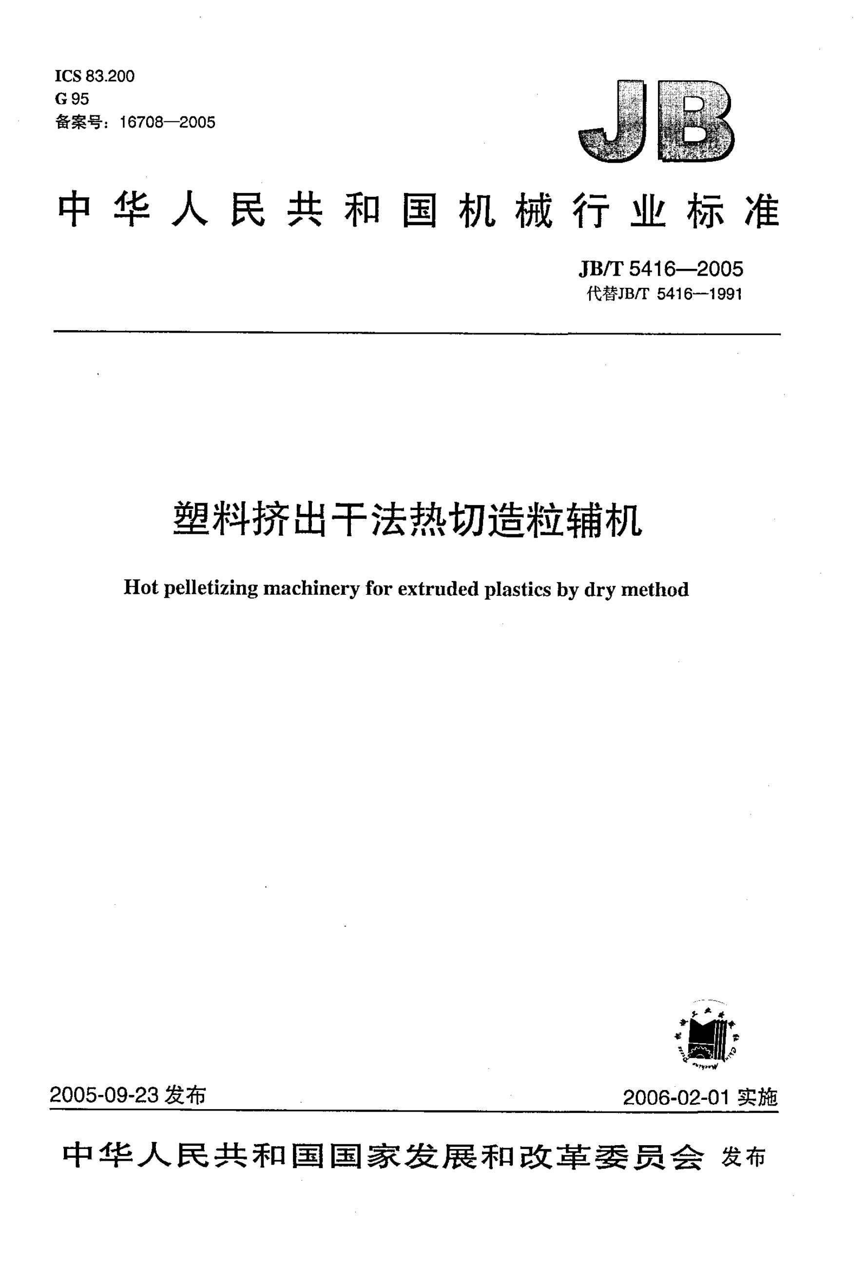 JB/T 5416-1991 塑料挤出干法热切选料辅机