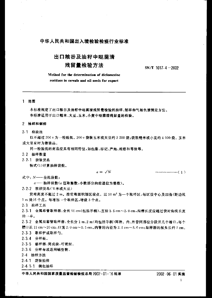 SN/T 1017.4-2002 出口粮谷及油籽中哒菌清残留量检验方法