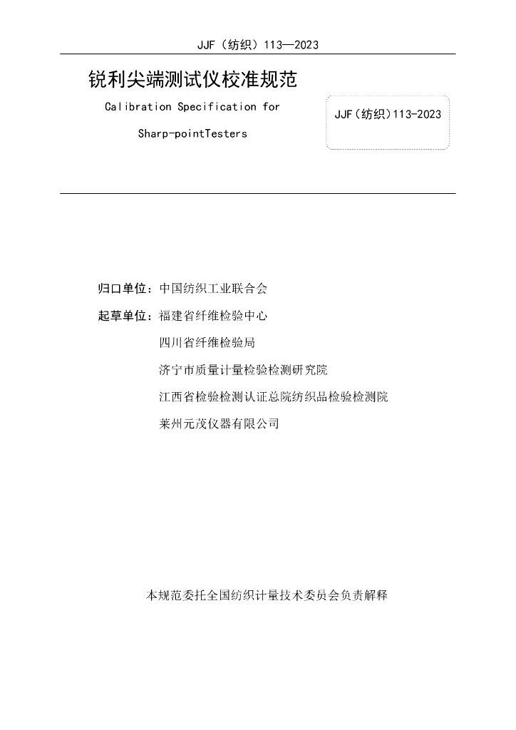 JJF(纺织)113-2023 锐利尖端测试仪校准规范(报批稿)