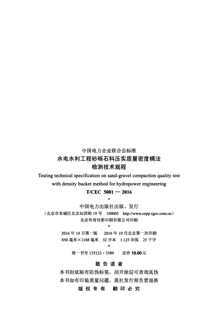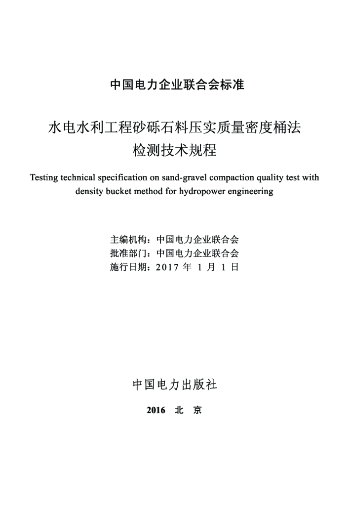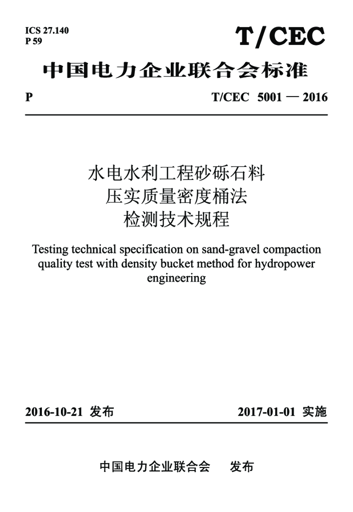 T/CEC 5001-2016 水电水利工程砂砾石料压实质量密度桶法检测技术规程