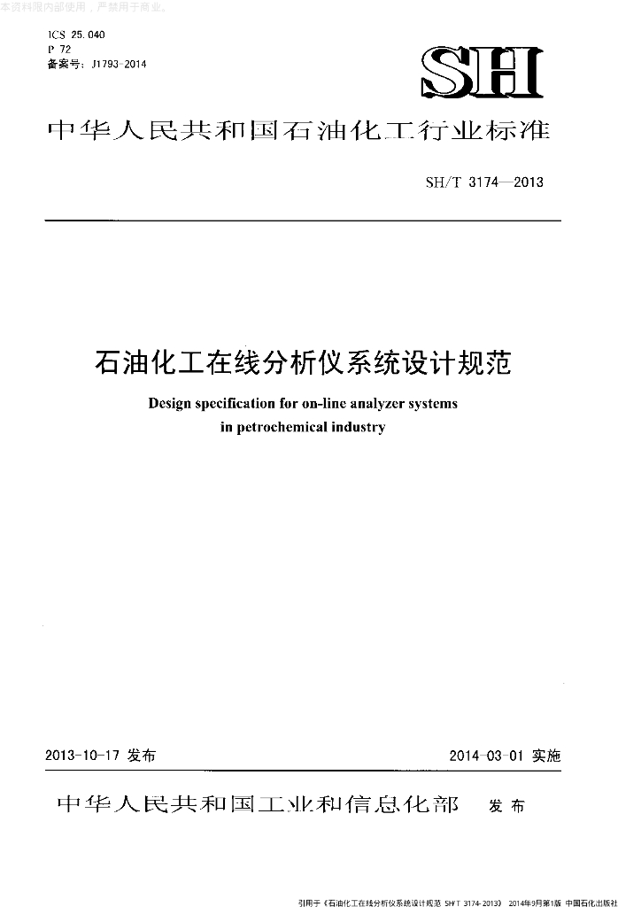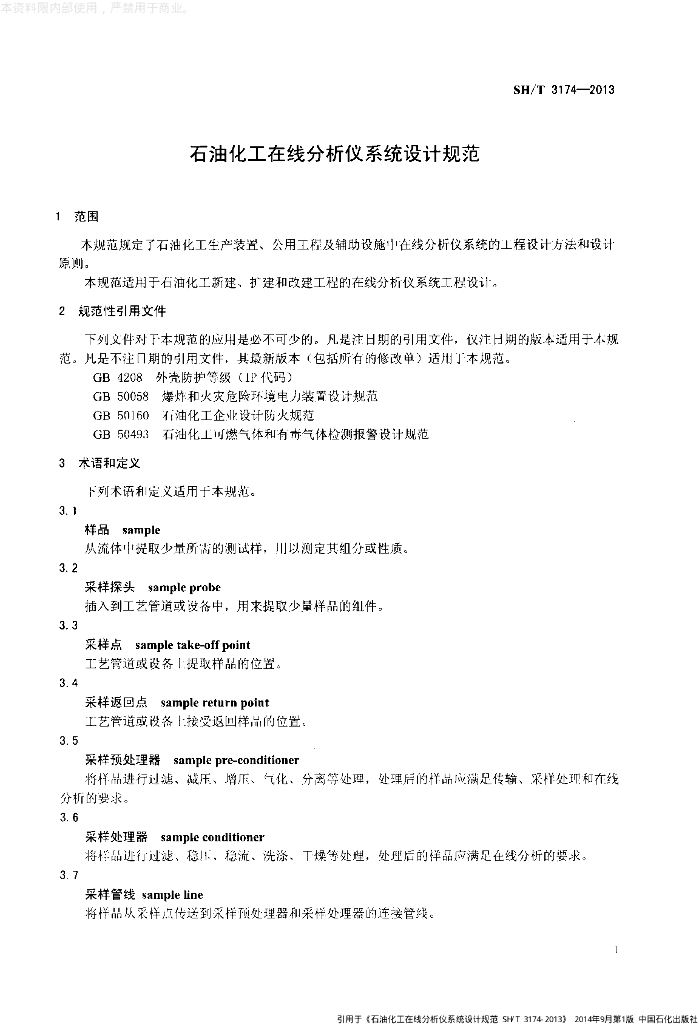 SH/T 3174-2013 石油化工在线分析仪系统设计规范