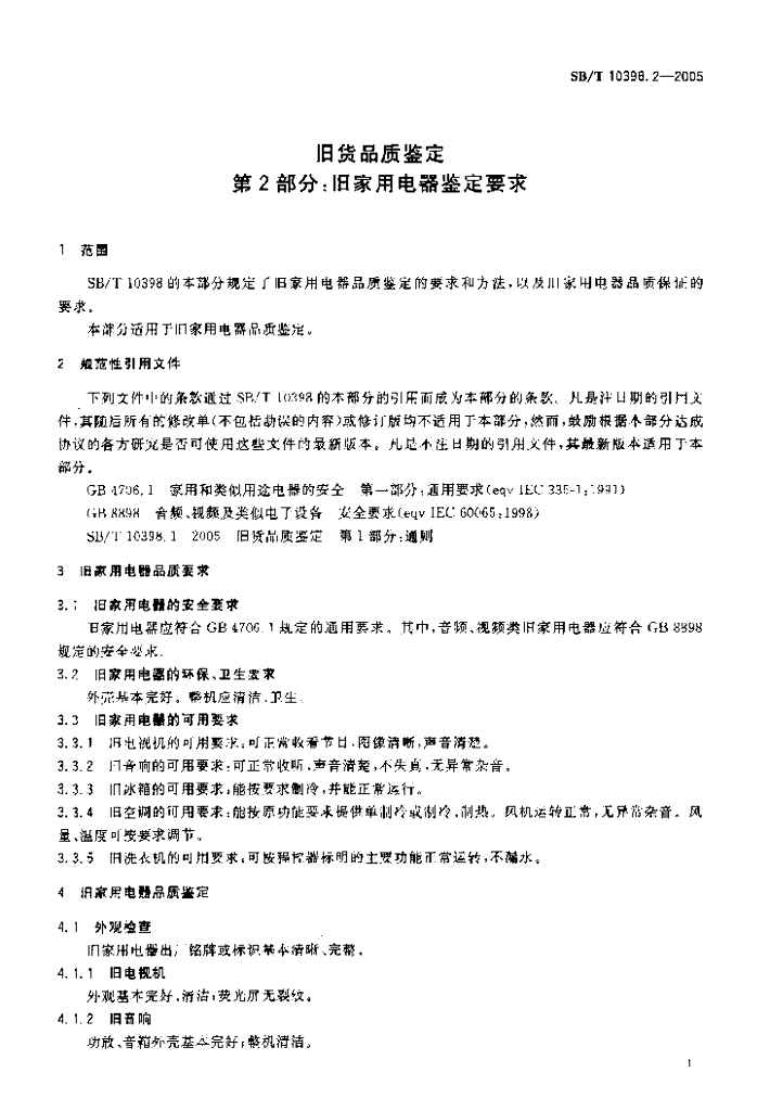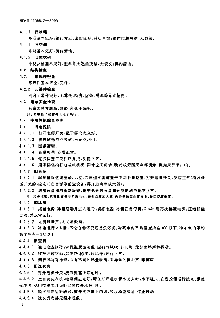 SB/T 10398.2-2005 旧货品质鉴定 第2部分旧家用电器鉴定要求