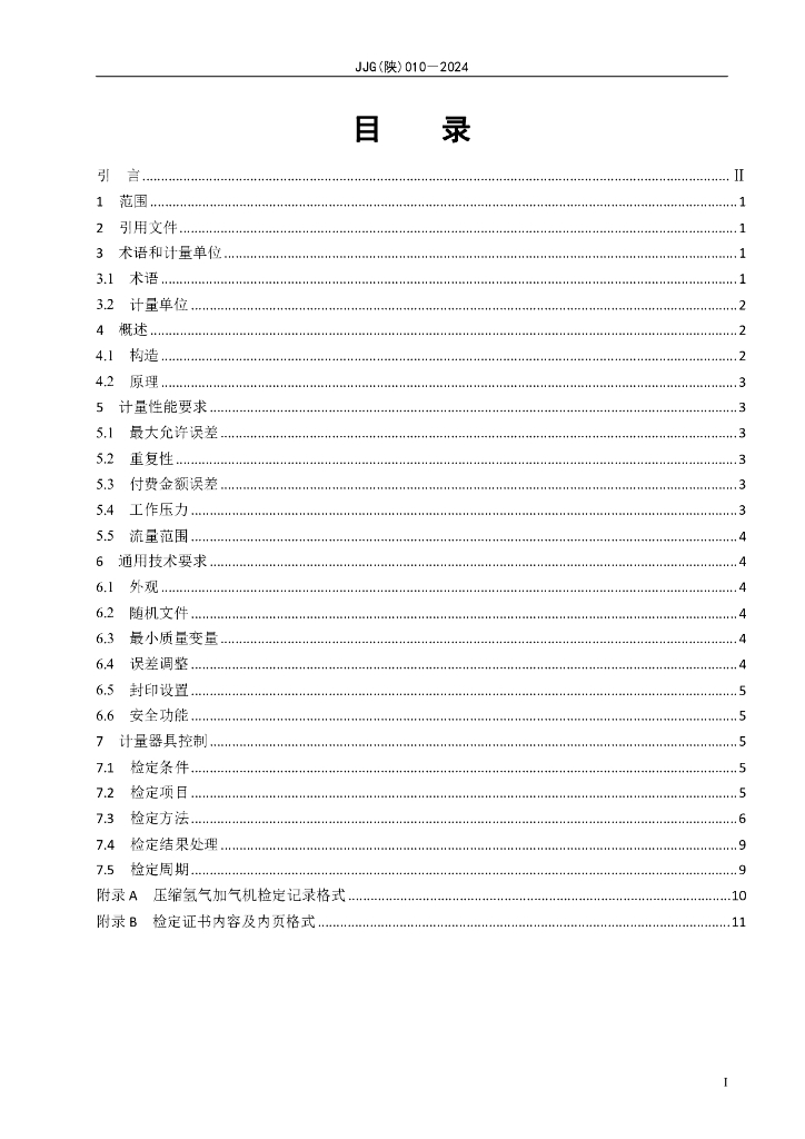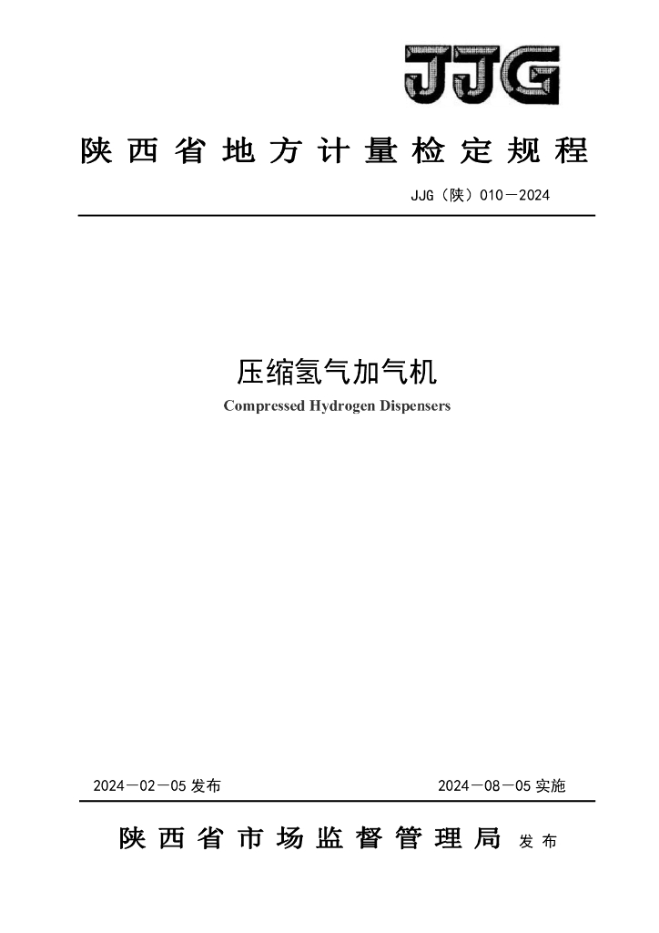 JJG(陕)010-2024 压缩氢气加气机检定规程