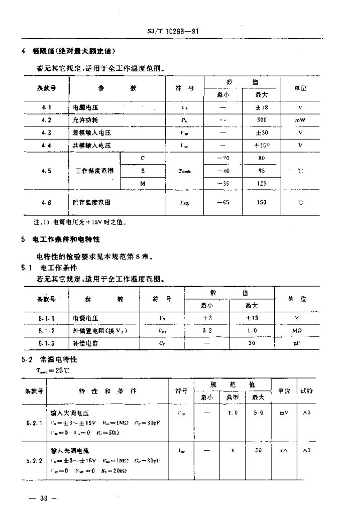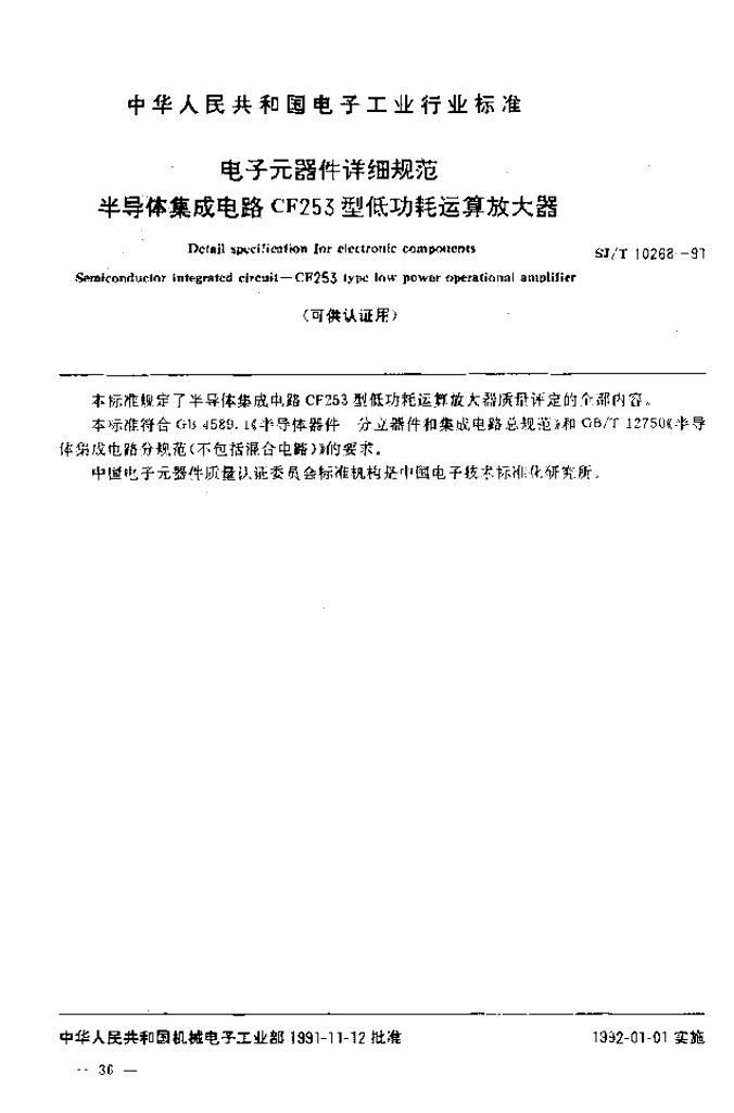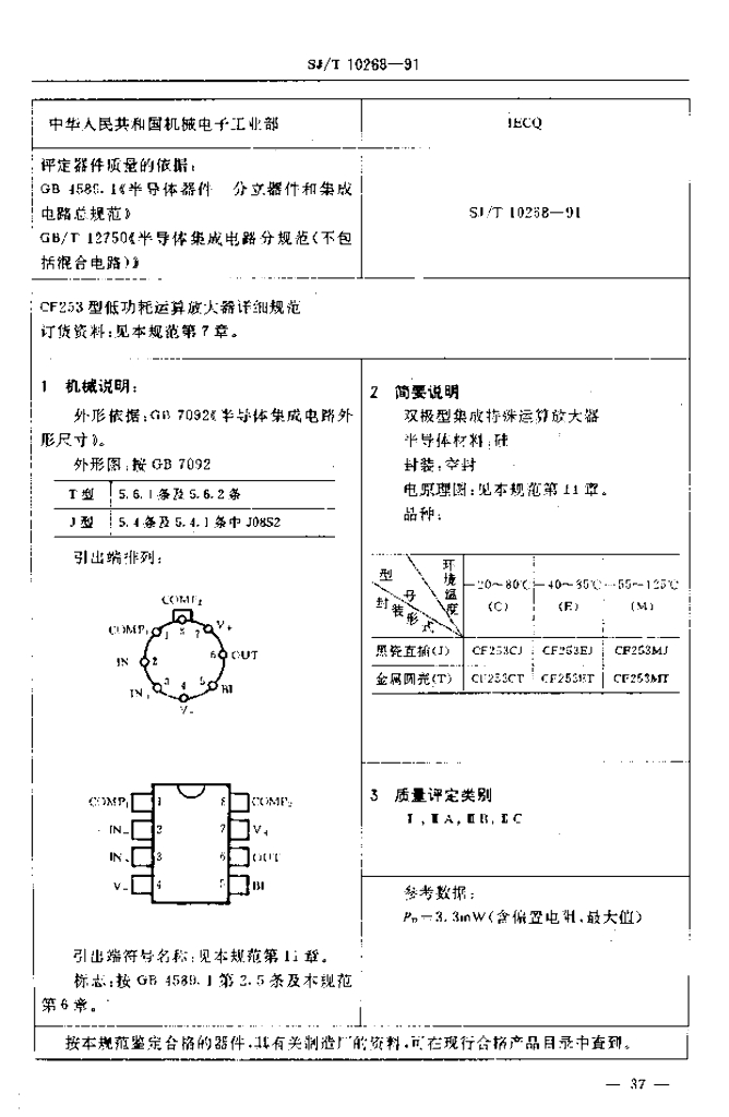 SJ/T 10268-1991 电子元器件详细规范 半导体集成电路CF253型低功耗运算放大器
