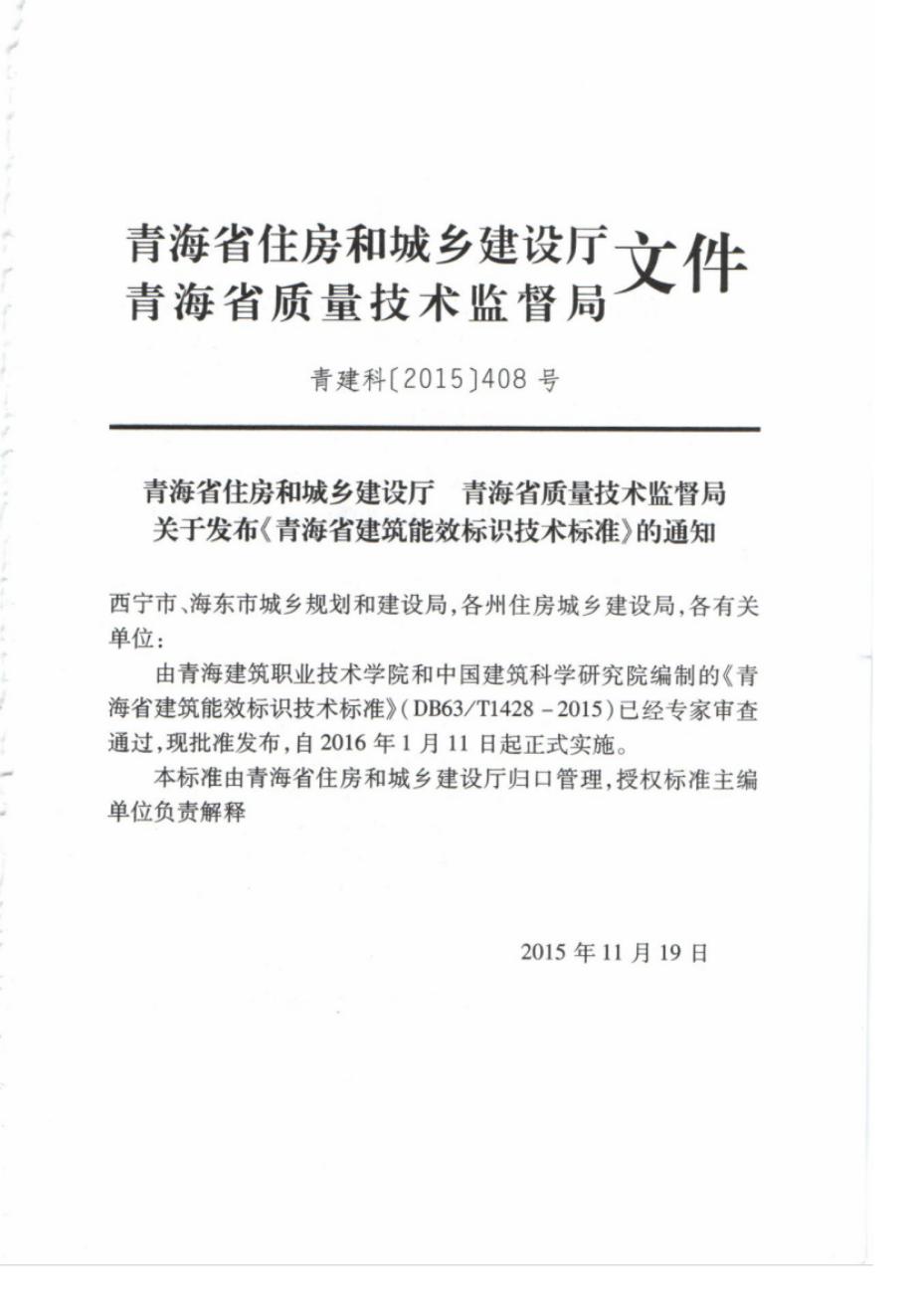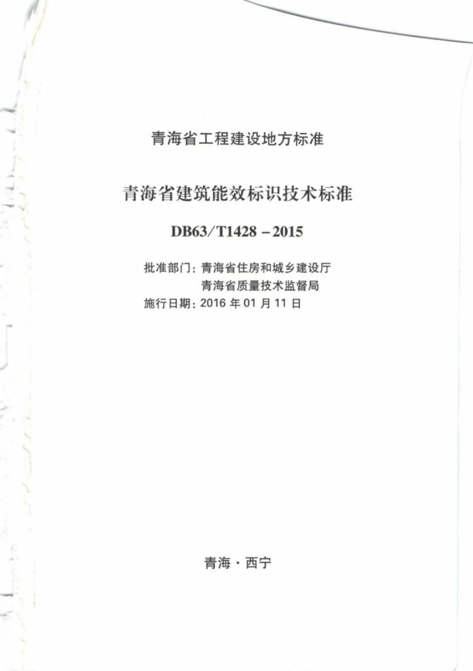 DB63/T 1428-2015 青海省建筑能效标识技术标准