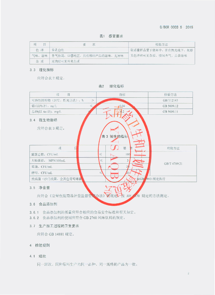 Q/BGR 0003S-2015 保山市果润实业有限公司 乳味饮料