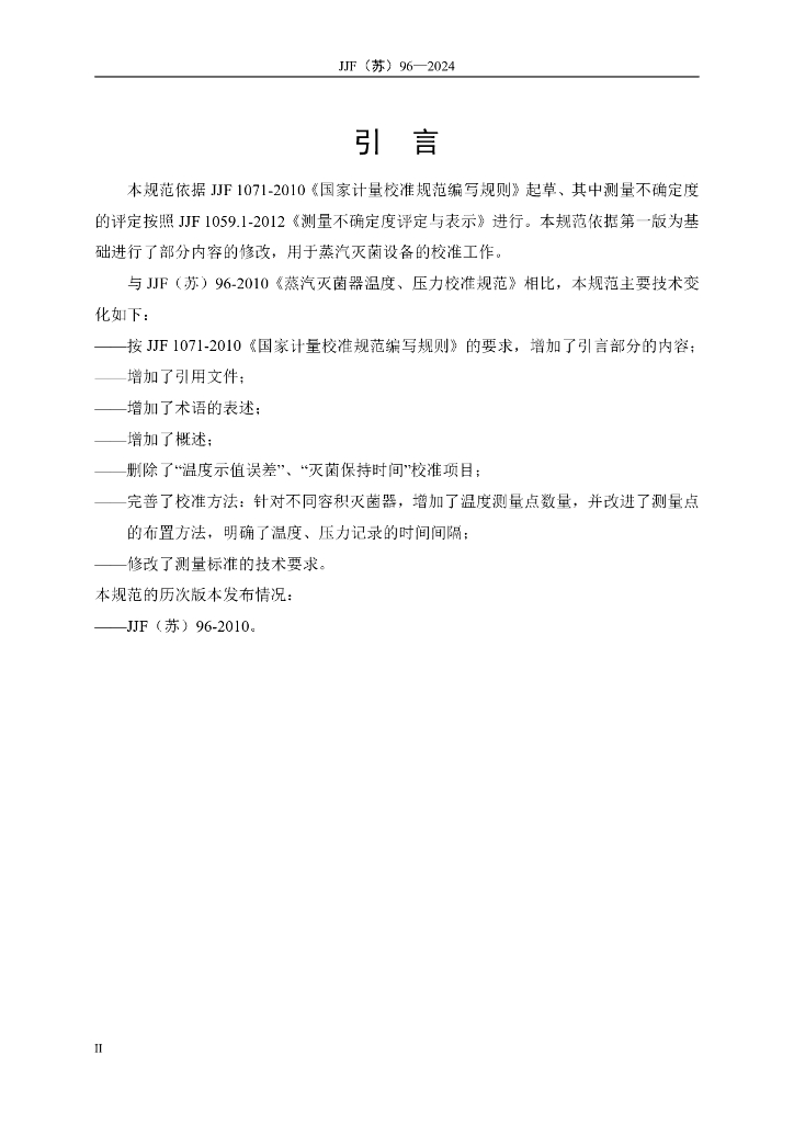 JJF(苏)96-2024 蒸汽灭菌器温度、压力参数校准规范