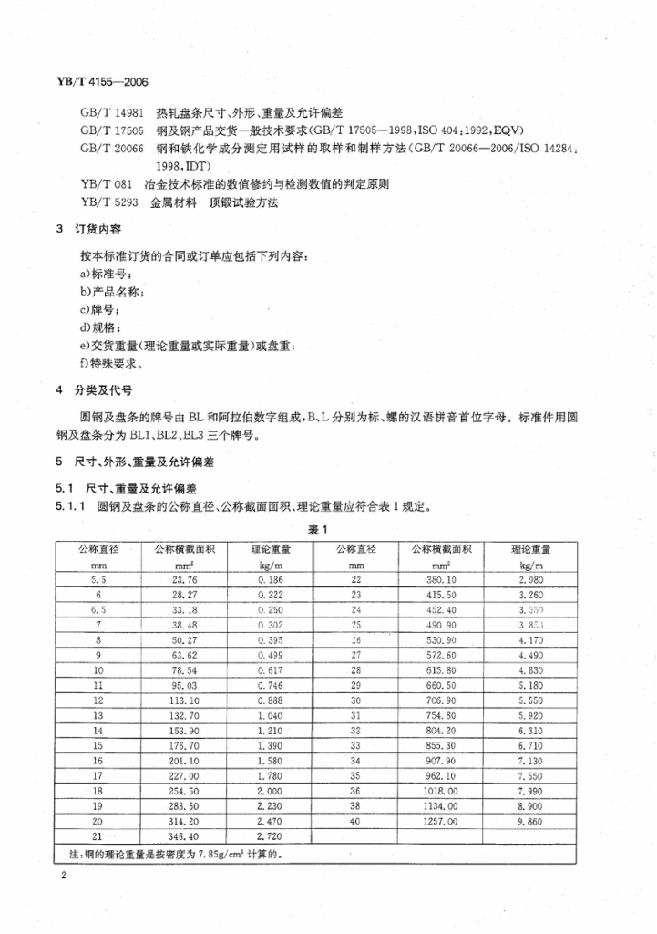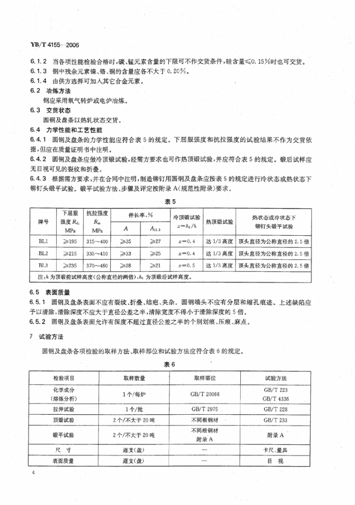 YB/T 4155-2006 标准件用碳素钢热轧圆钢及盘条