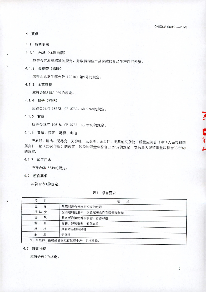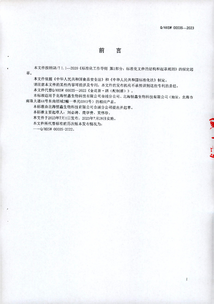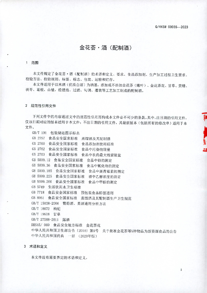 Q/HXSW 0003S-2023 金花荟·酒(配制酒)