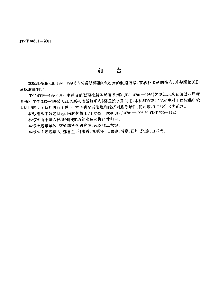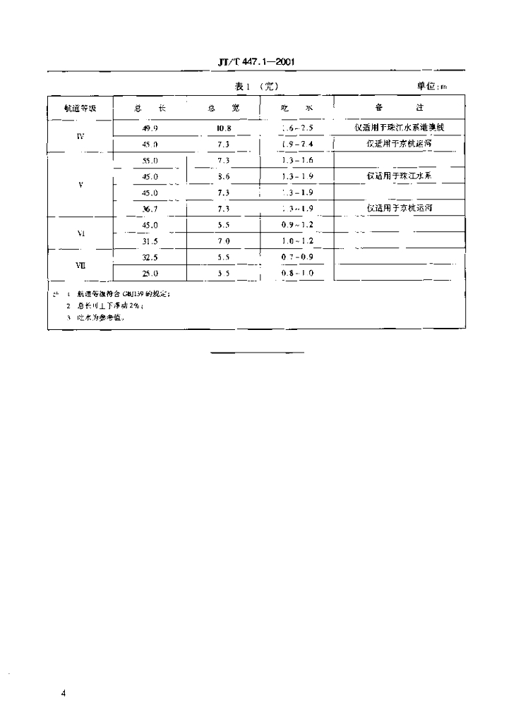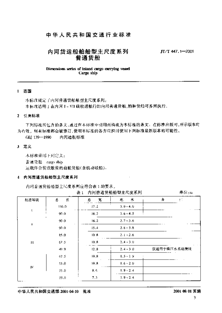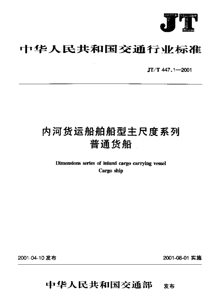 JT/T 447.1-2001 内河货运船舶船型主尺度系列普通货船