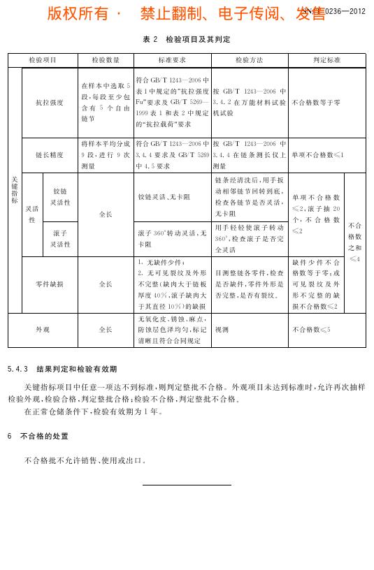 SN/T 0236-2012 出口工业链条检验规程 通用要求