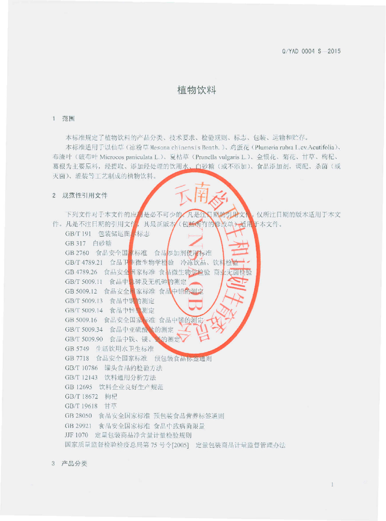 Q/YAD 0004S-2015 云南澳地澳食品有限公司 植物饮料