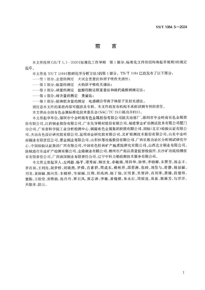 YS/T 1084.5-2024 粗硒化学分析方法 第5部分:铂和钯含量的测定 电感耦合等离子体原子发射光谱法