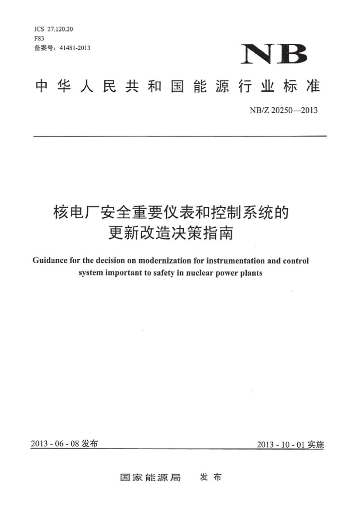 NB/Z 20250-2013 核电厂安全重要仪表和控制系统的更新改造决策指南