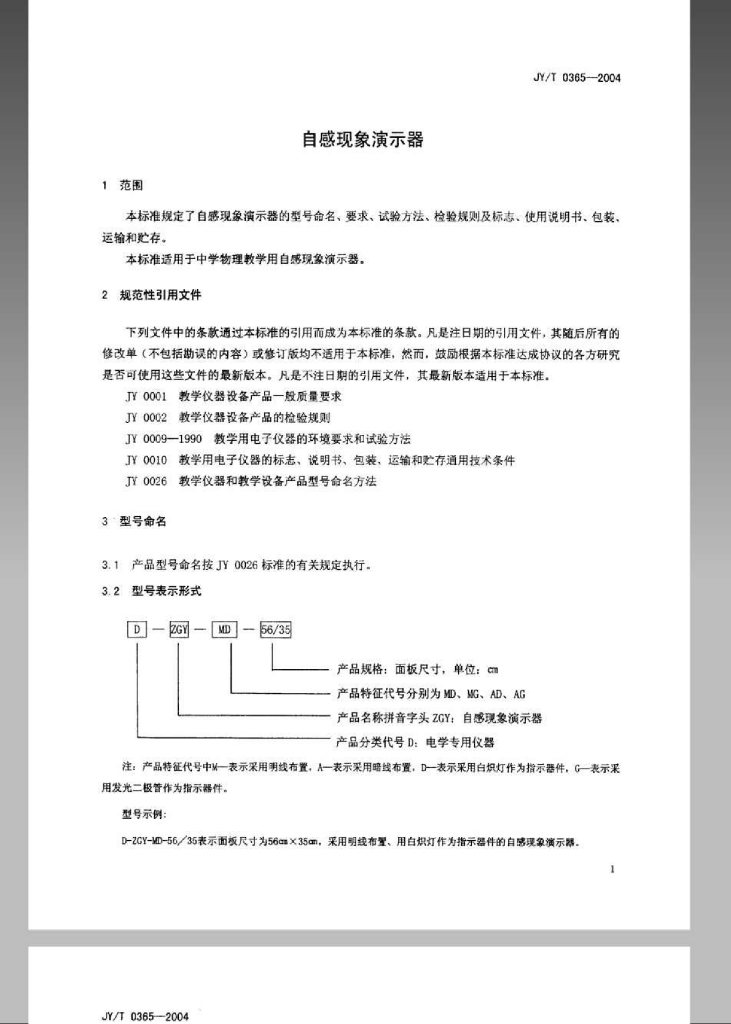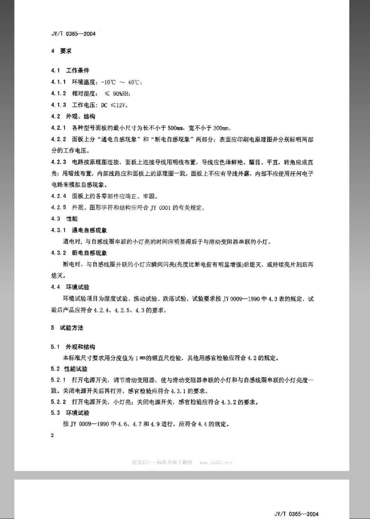 JY/T 0365-2004 自感现象演示器