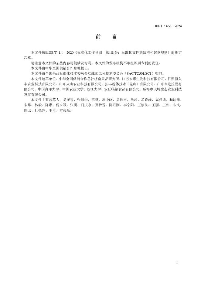 中华全国供销合作总社济南果品研究所、江苏安惠生物科技有限公司、日照恒久丰农业科技有限公司、山东火山农业科技有限公司、拓丰粉体技术(昆山)有限公司、广东辛选控股有限公司、中国海洋大学、中国农业大学、浙江大学、安丘临福食品有限公司、威海摩天岭生态农业科技发展有限公司