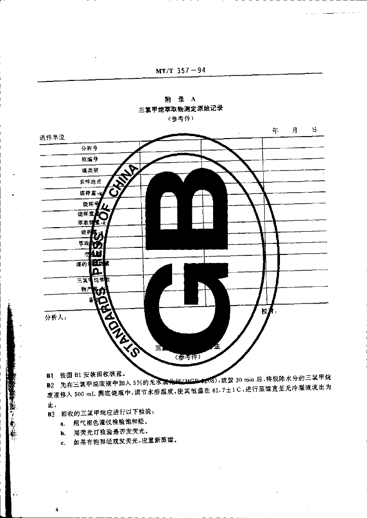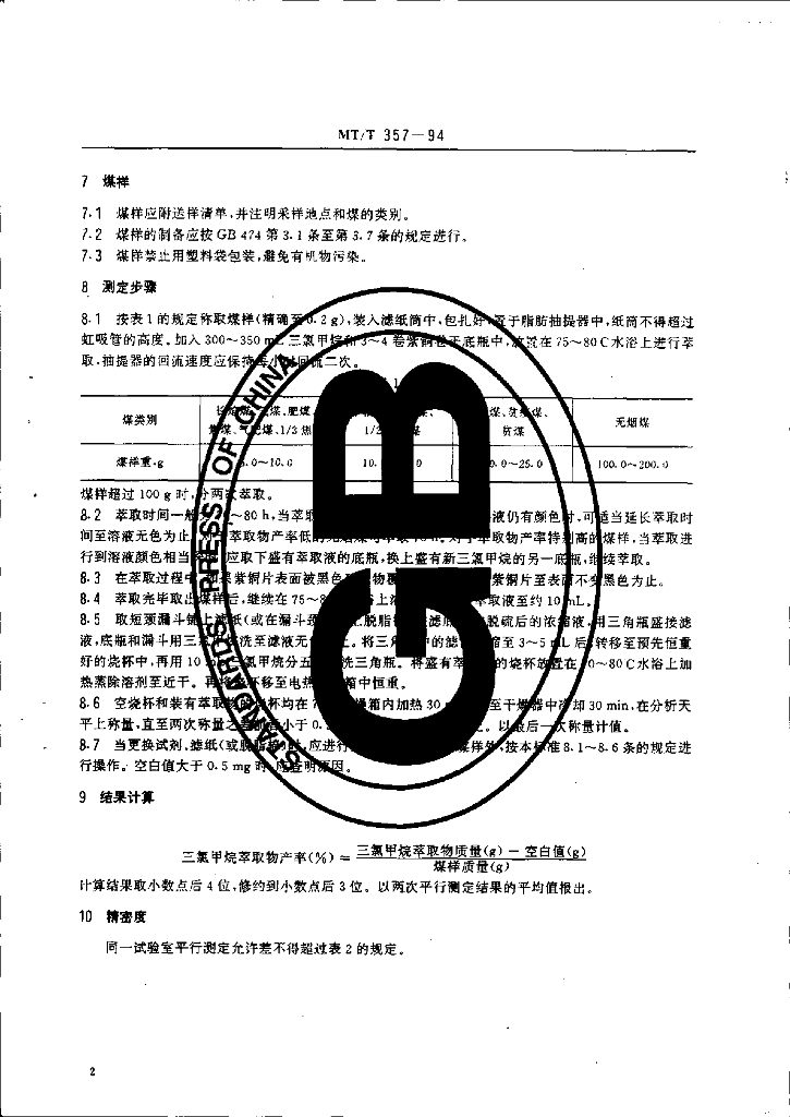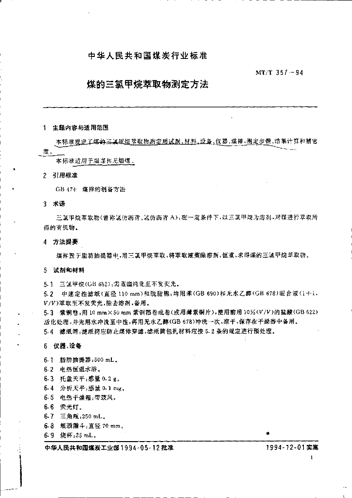 MT 357-1994 煤的三氯甲烷萃取物测定方法