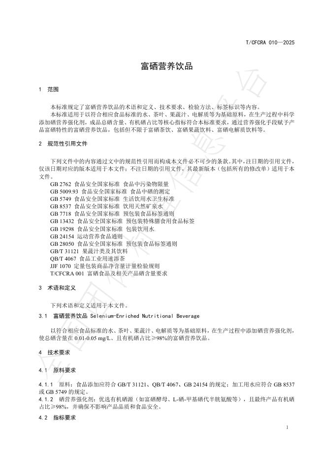 T/CFCRA 010-2025 富硒营养饮品