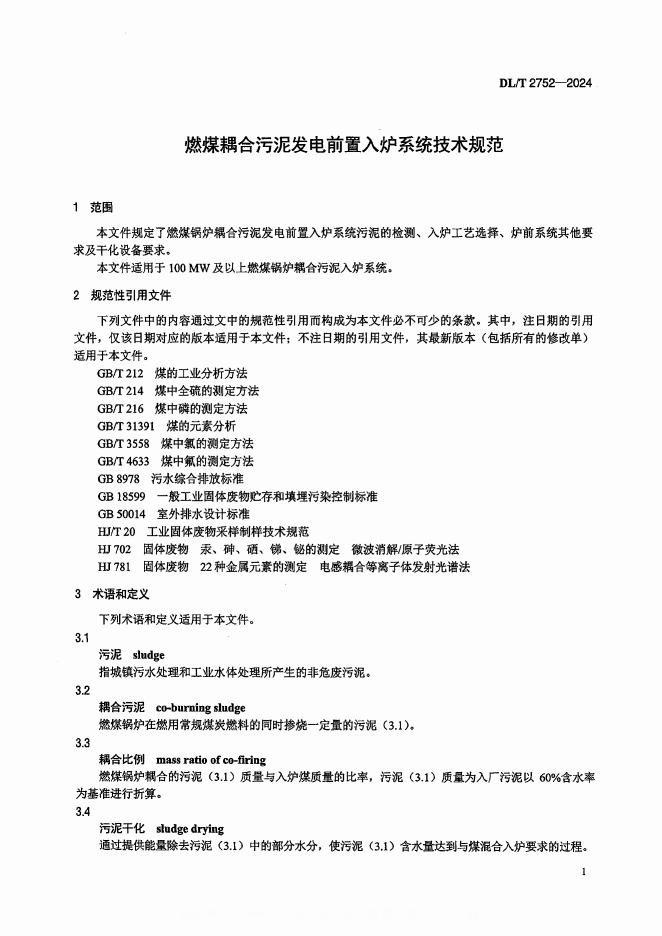 DL/T 2752-2024 燃煤耦合污泥发电前置入炉系统技术规范
