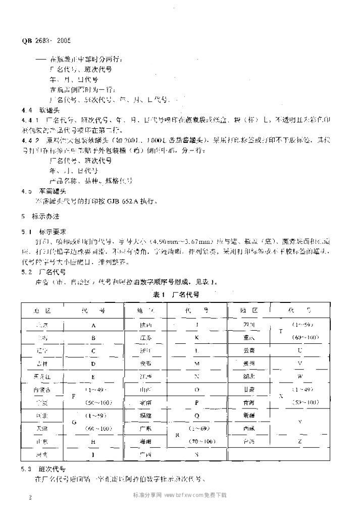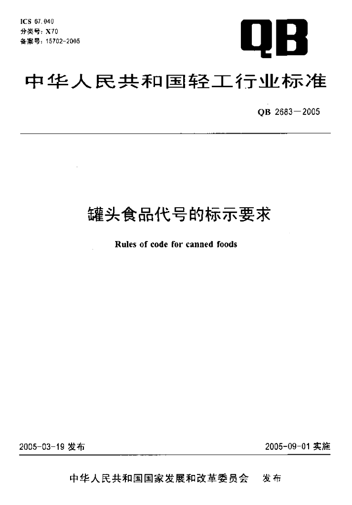 QB 2683-2005 罐头食品代号的标示要求