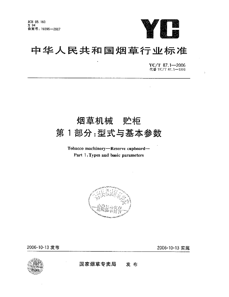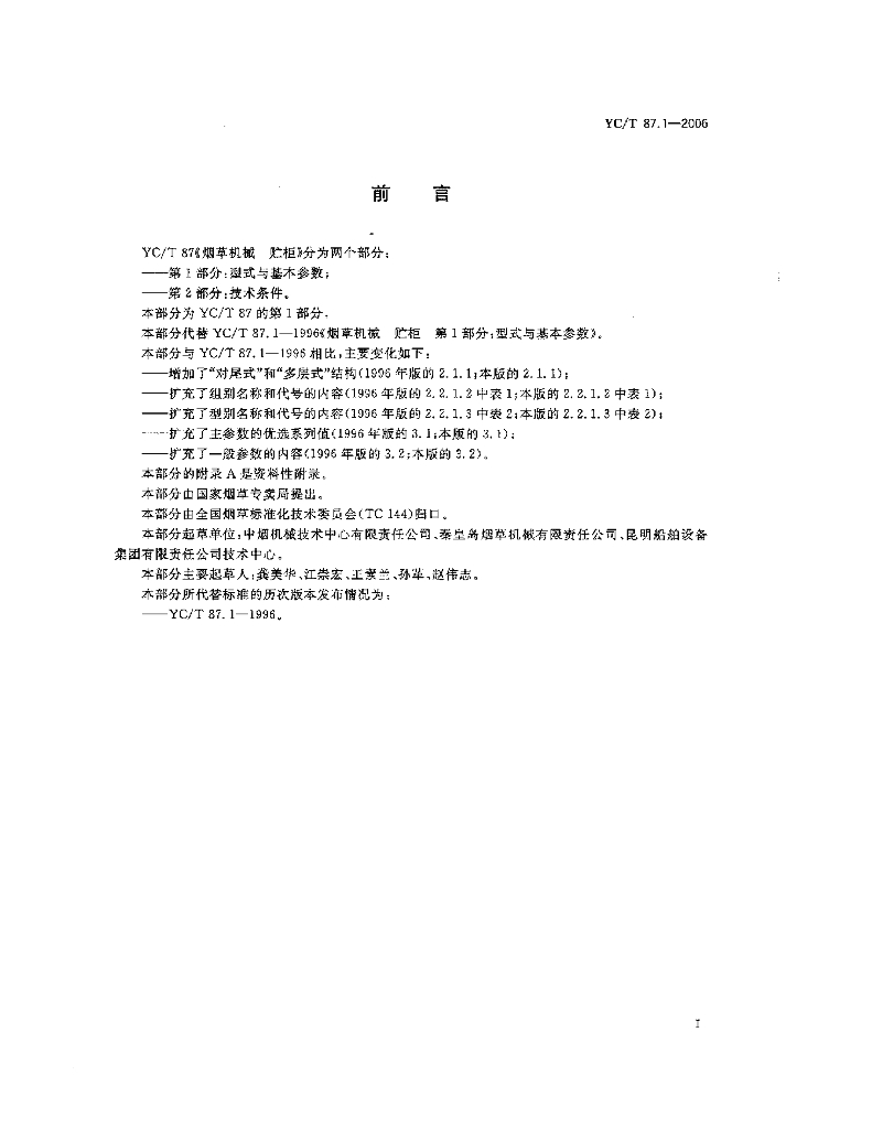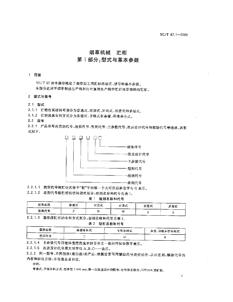 YC/T 87.1-2006 烟草机械 贮柜 第1部分:型式与基本参数