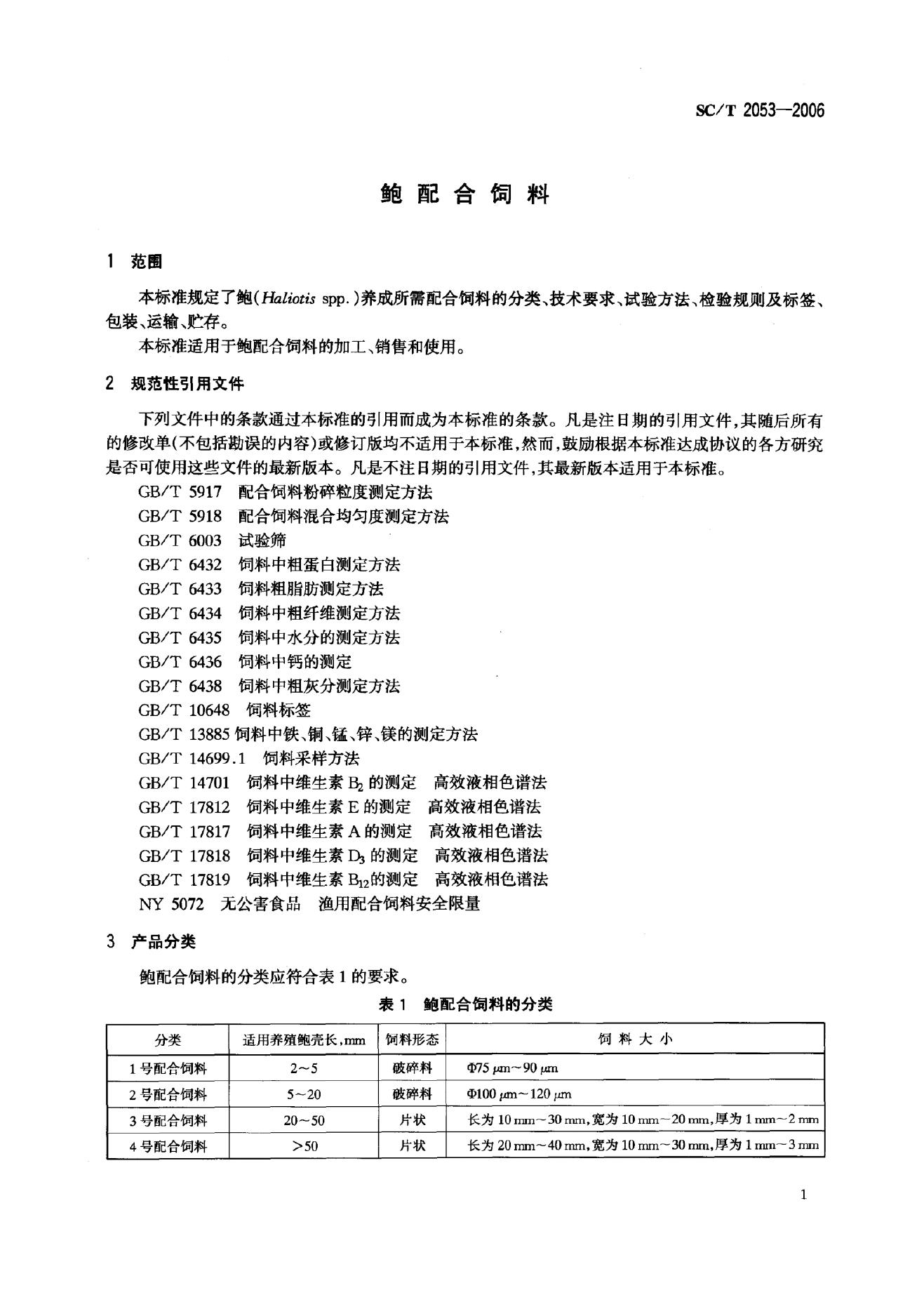 SC/T 2053-2006 鲍配合饲料