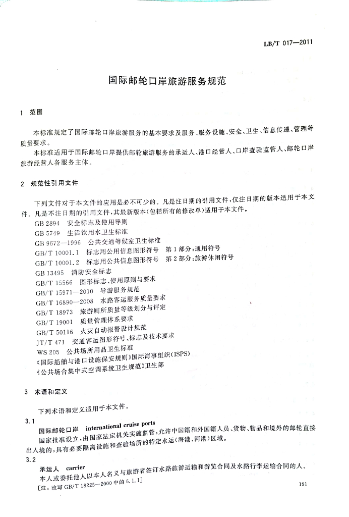 LB/T 017-2011 国际邮轮口岸旅游服务规范