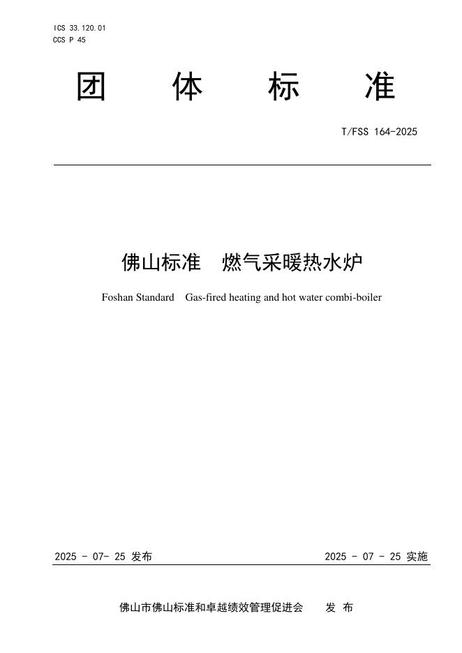 T/FSS 164-2025 佛山标准 燃气采暖热水炉
