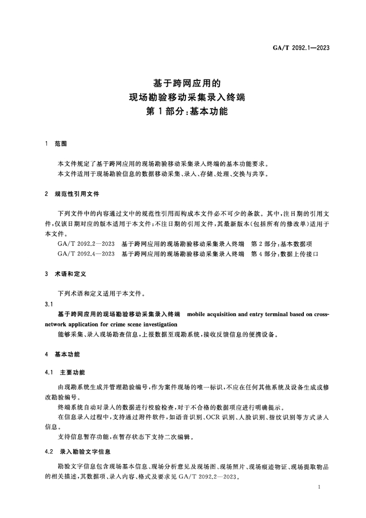 GA/T 2092.1-2023 基于跨网应用的现场勘验移动采集录入终端 第1部分:基本功能