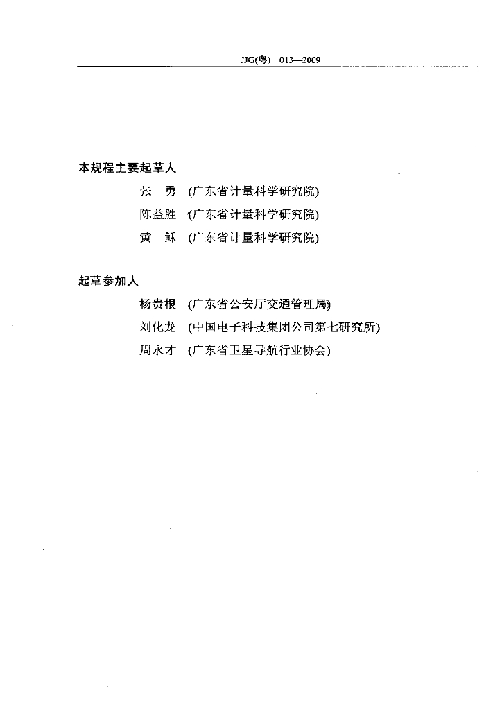 张勇(广东省计量科学研究院)、陈益胜(广东省计量科学研究院)、黄稣(广东省计量科学研究院)、杨贵根(广东省公安厅交通管理局)、刘化龙(中国电子科技集团公司第七研究所)、周永才(广东省卫星导航行业协会)
