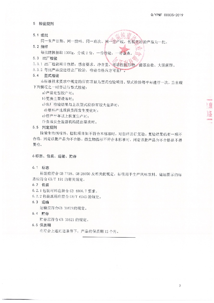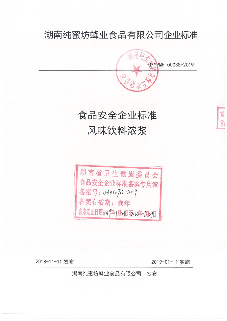 Q/YPMF 0003S-2019 风味饮料浓浆