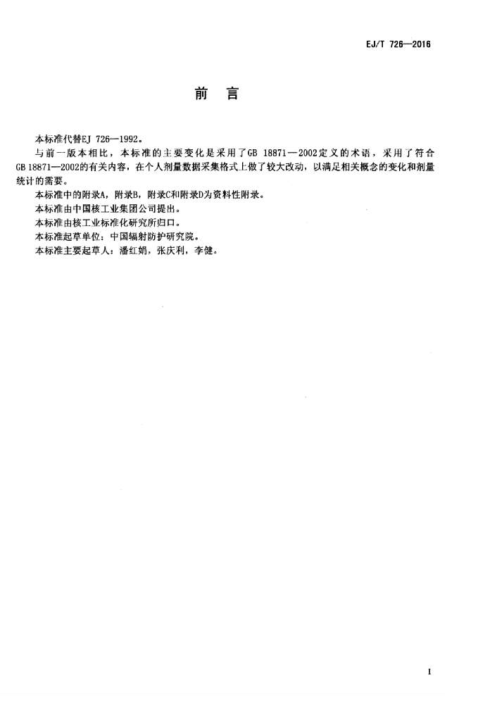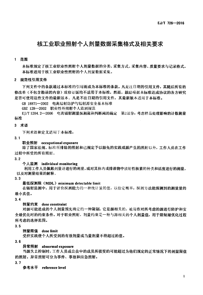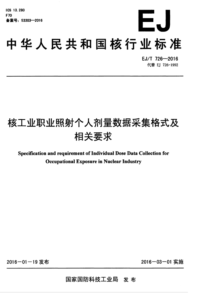 EJ/T 726-2016 核工业职业照射个人剂量数据采集格式及相关要求