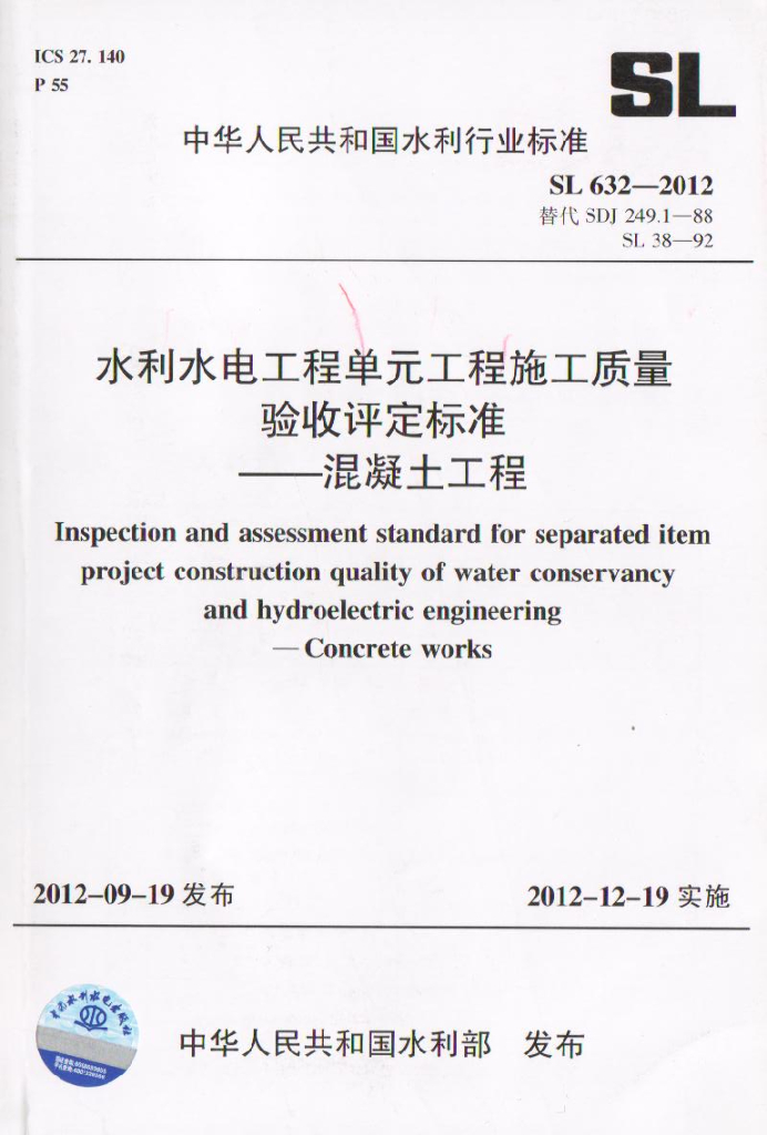 SL 632-2012 水利水电工程单元工程施工质量验收评定标准——混凝土工程(附条文说明)