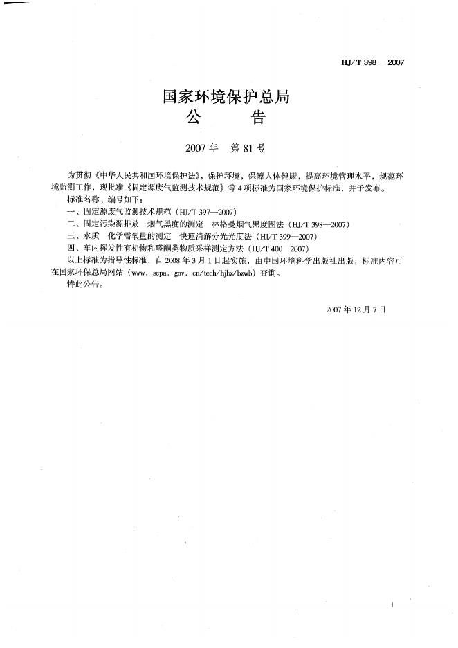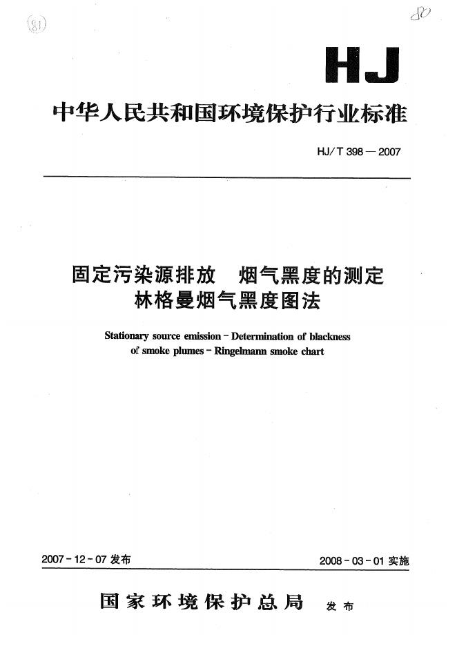 HJ/T 398-2007 固定污染源排放烟气黑度的测定 林格曼烟气黑度图法