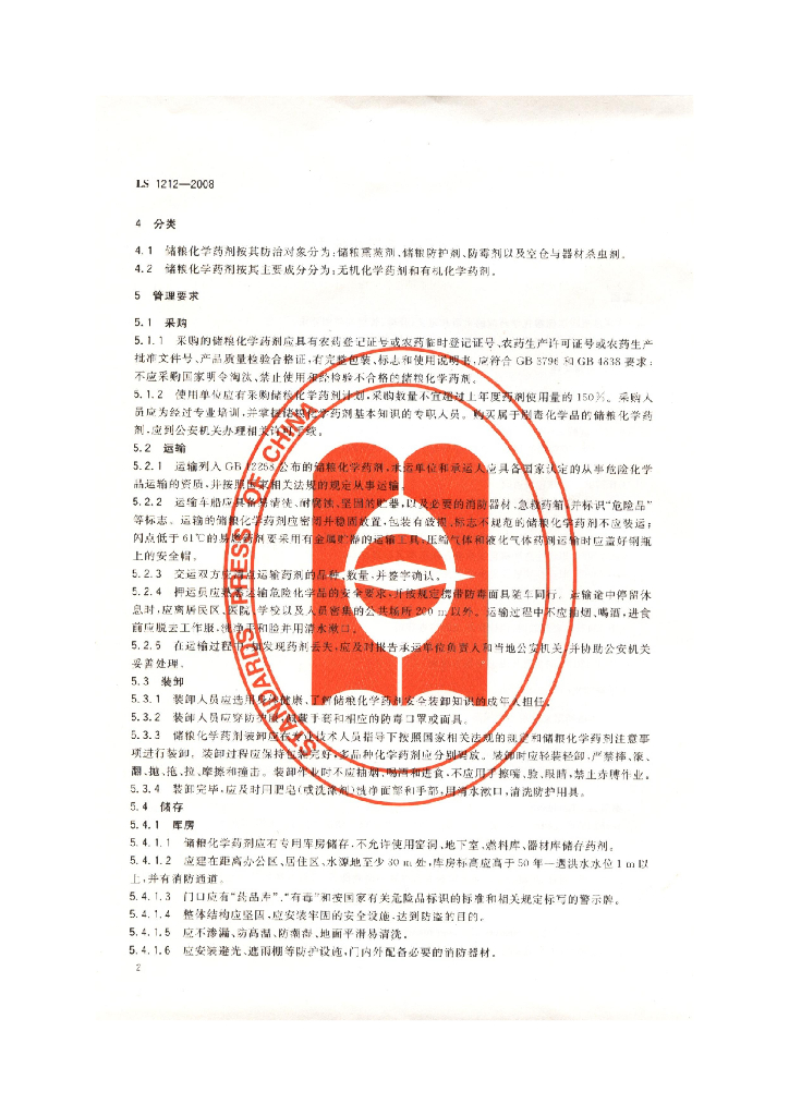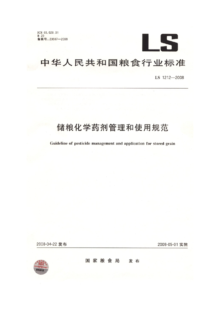 LS 1212-2008 储粮化学药剂管理和使用规范