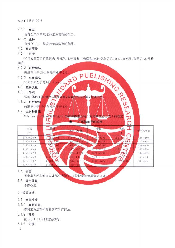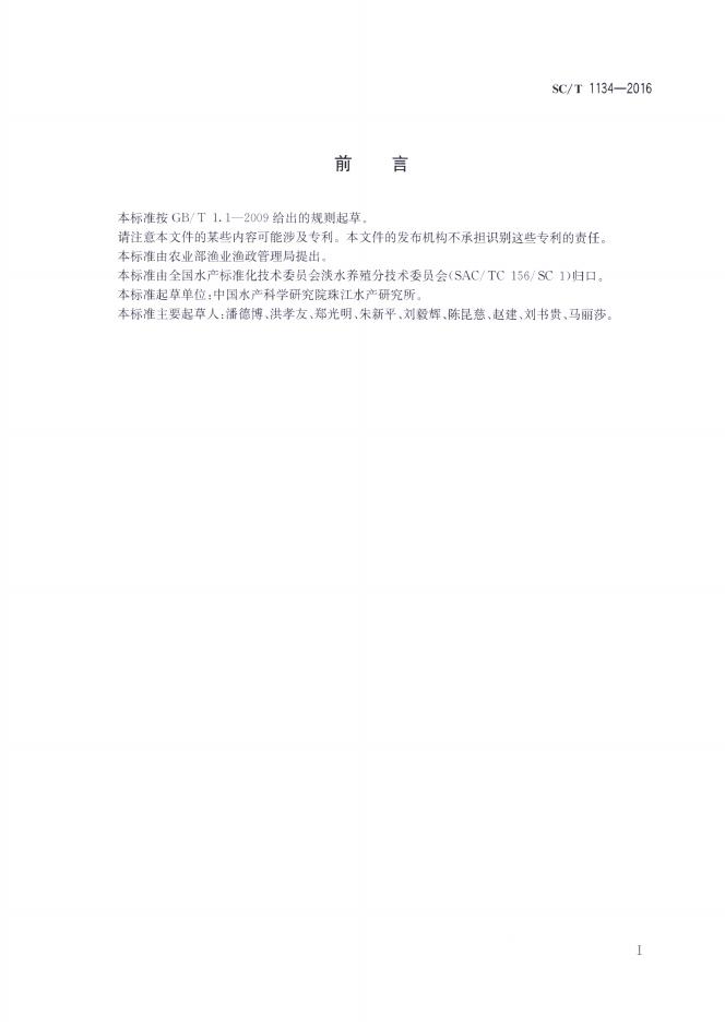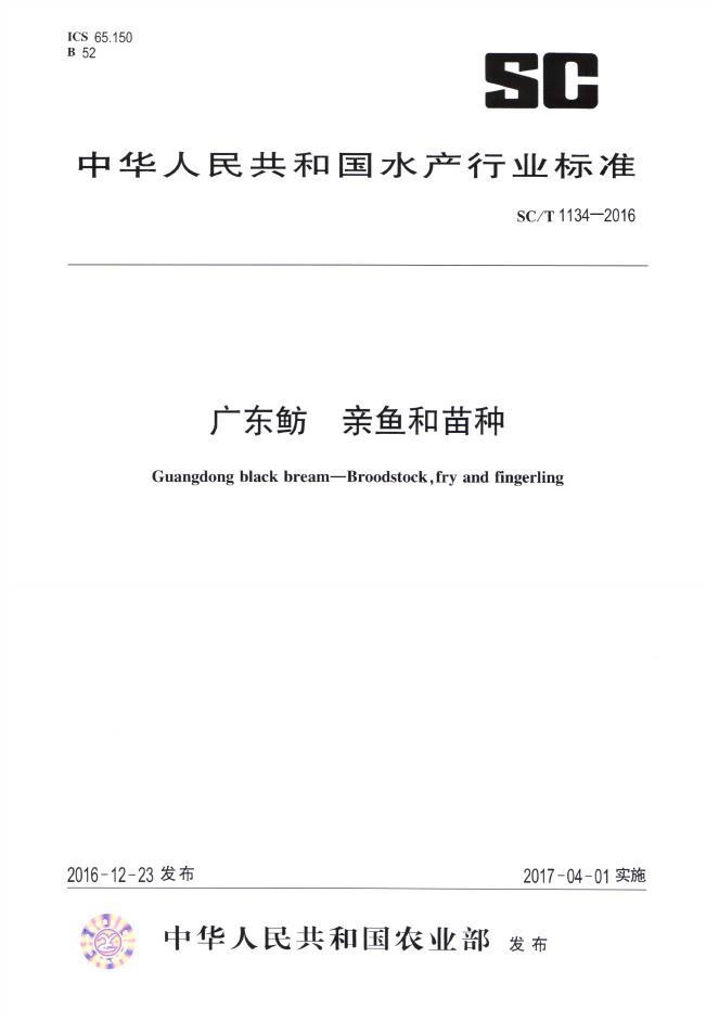 SC/T 1134-2016 广东鲂 亲鱼和苗种