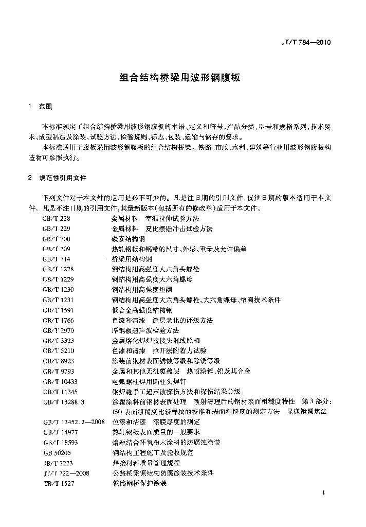 JT/T 784-2010 组合结构桥梁用波形钢腹板