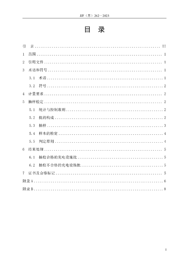 JJF(苏)262-2023 电动汽车公共充电设施基于统计抽样方法检定的抽样及判定规则(试行)