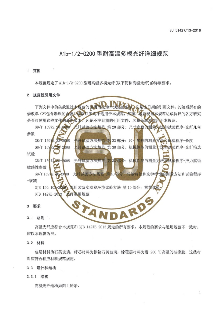 SJ 51427/13-2016 A1b-1/2-G200型耐高温多模光纤详细规范