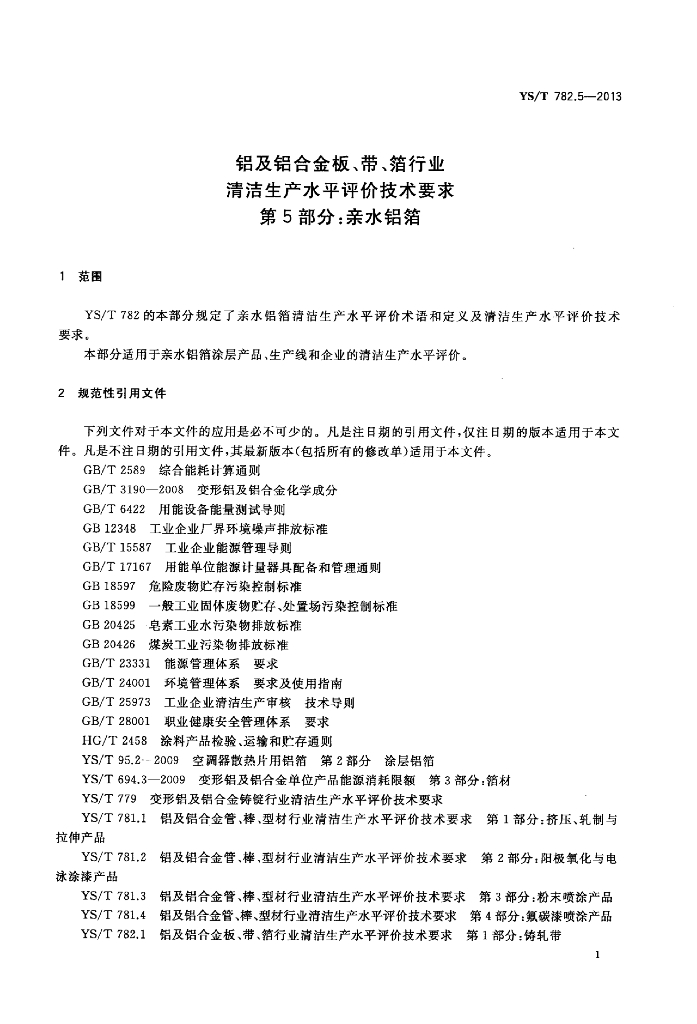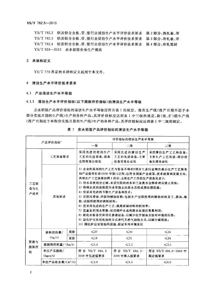 YS/T 782.5-2013 铝及铝合金板、带、箔行业清洁生产水平评价技术要求 第5部分:亲水铝箔