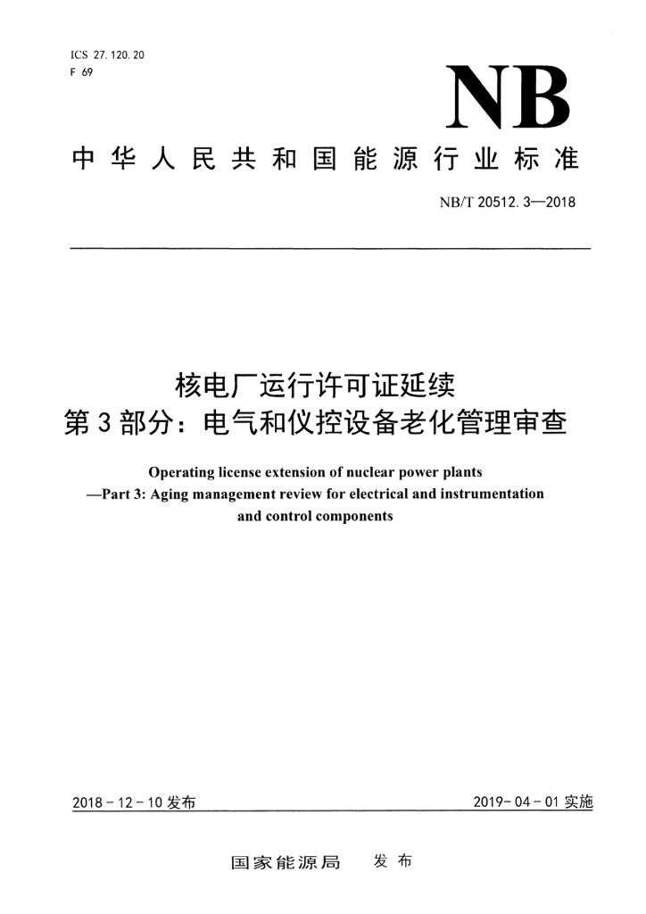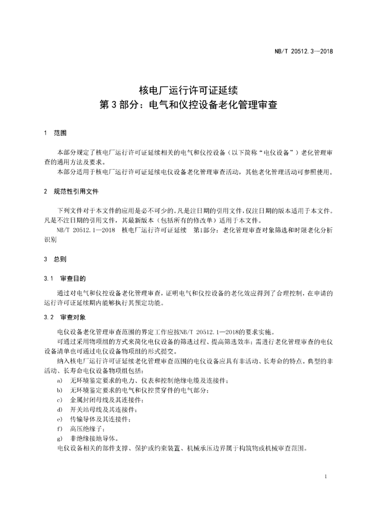NB/T 20512.3-2018 核电厂运行许可证延续 第3部分:电气和仪控设备老化管理审查