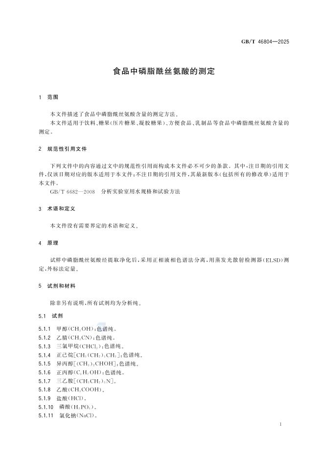 GB/T 46804-2025 食品中磷脂酰丝氨酸的测定