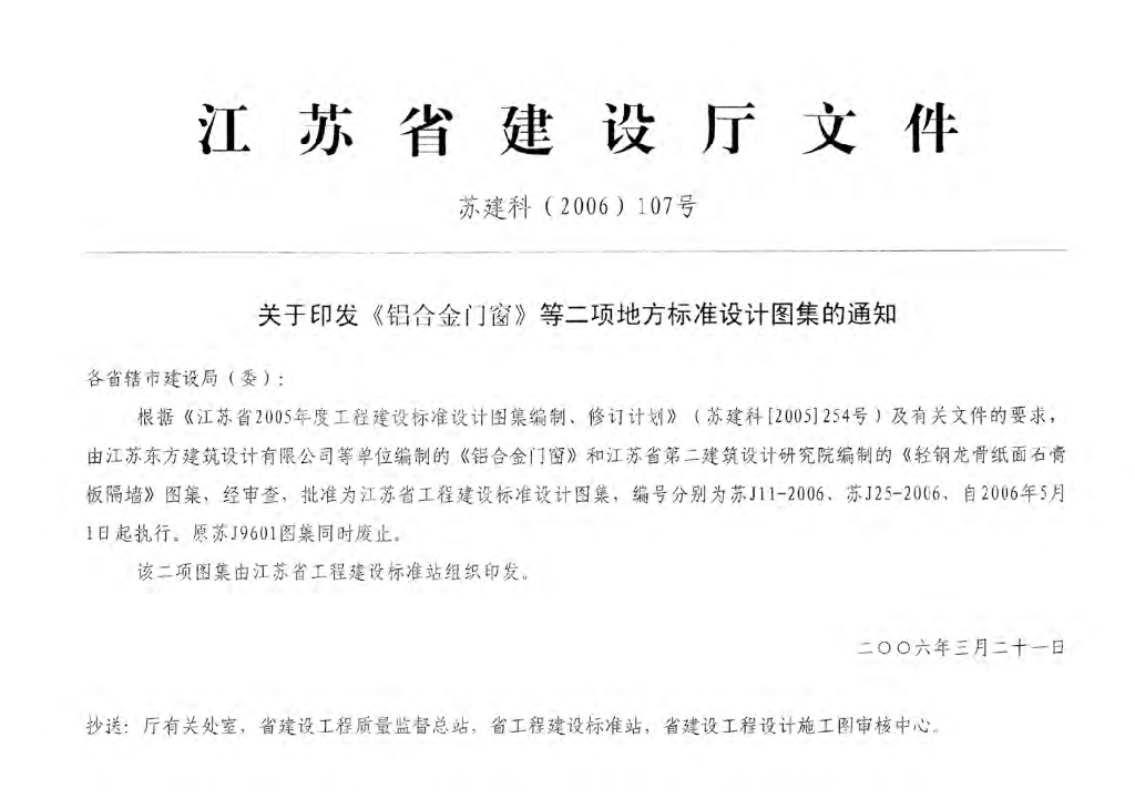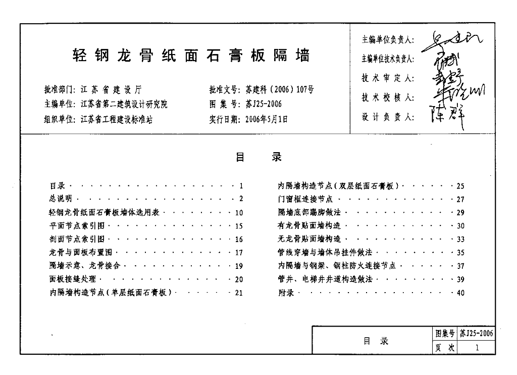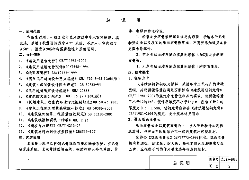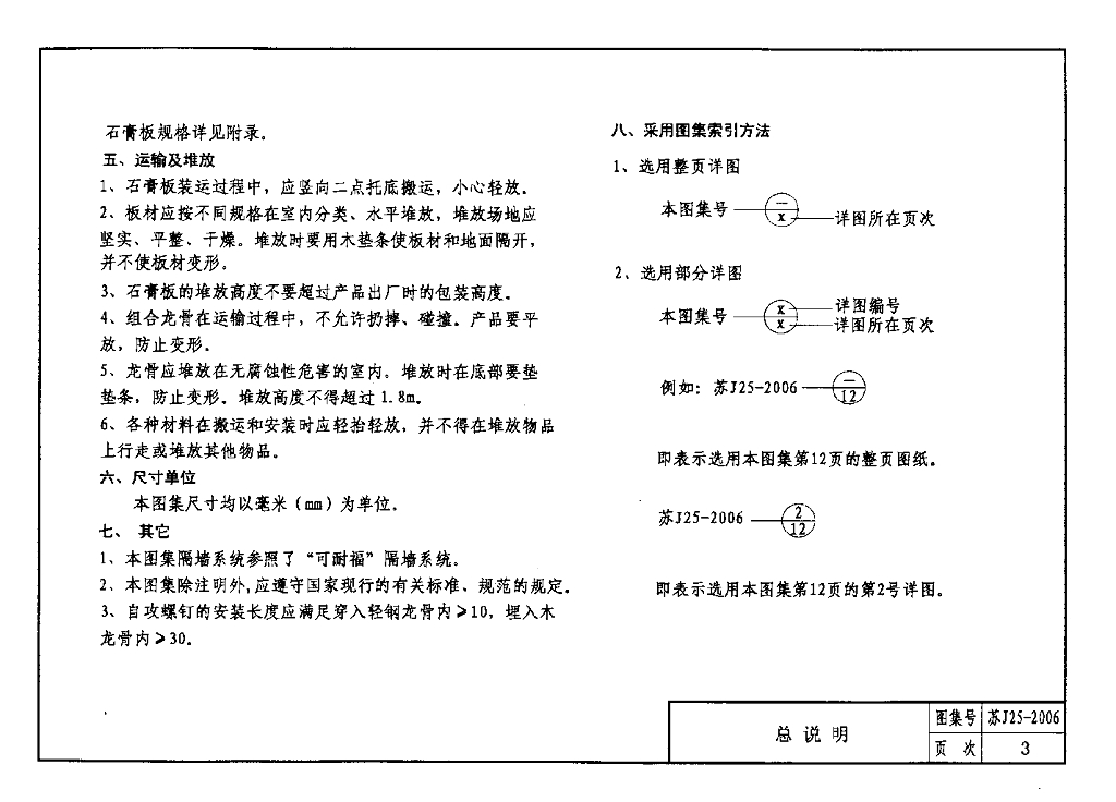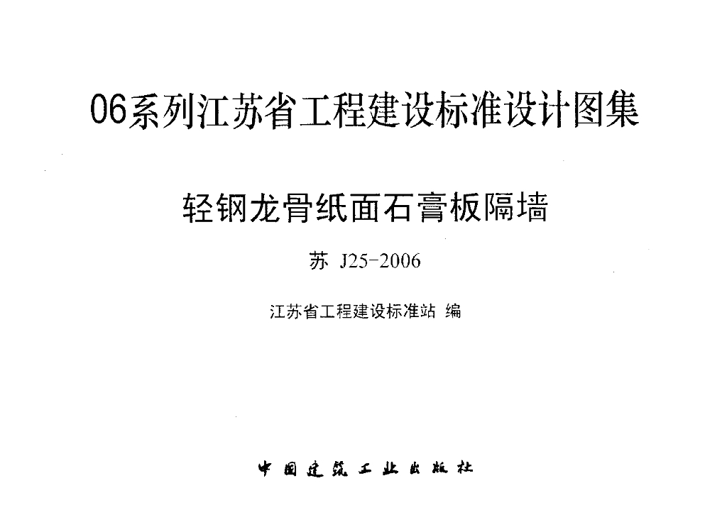 苏J25-2006 轻钢龙骨纸面石膏板隔墙图集