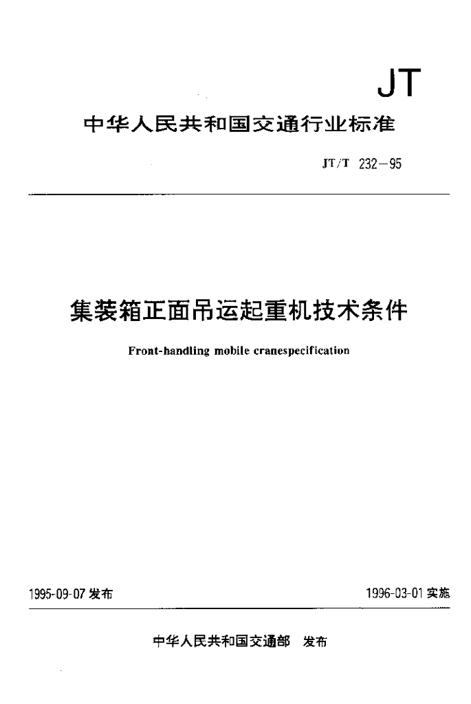 JT/T 232-1995 集装箱正面吊运起重机技术条件