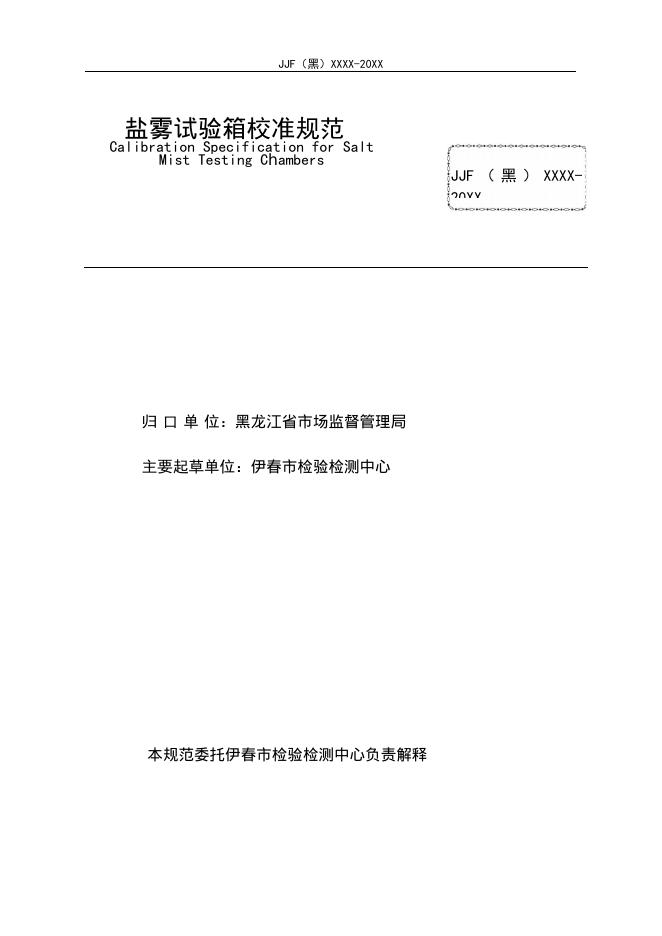 JJF(黑)XX-20XX 盐雾试验箱校准规范(审定稿)