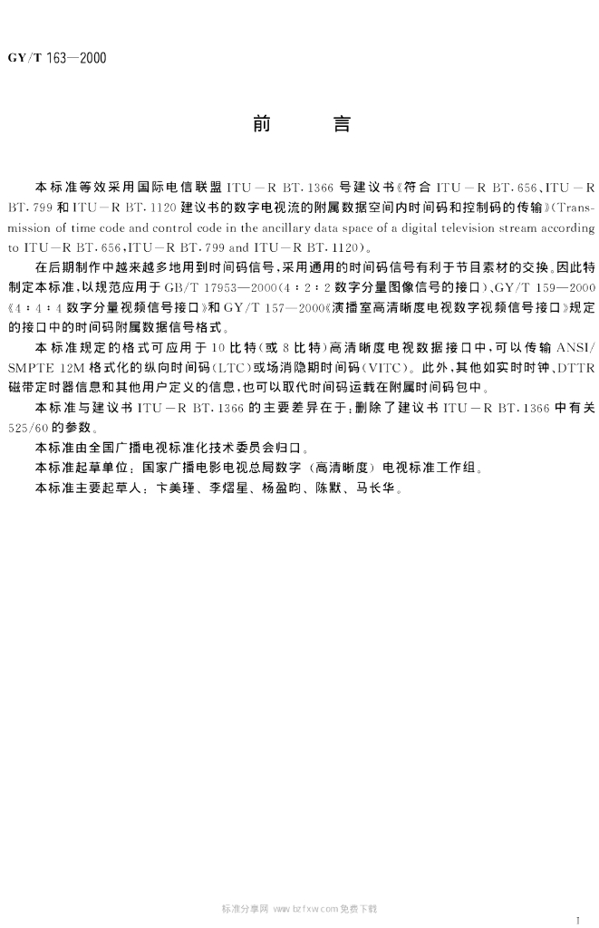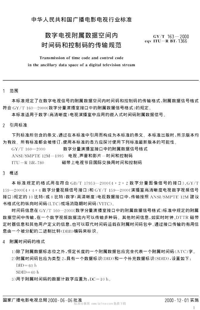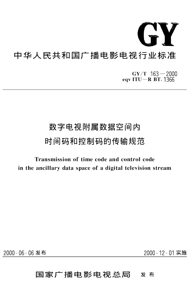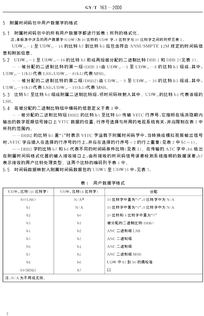 GY/T 163-2000 数字电视附属数据空间内时间码和控制码的传输规范