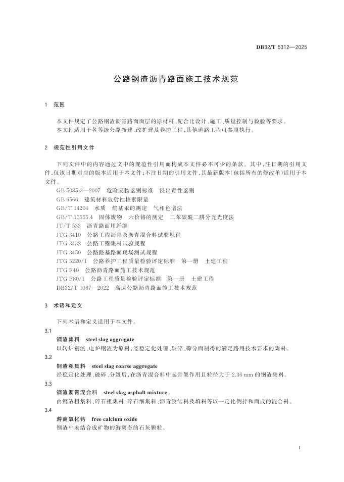 DB32/T 5312-2025 公路钢渣沥青路面施工技术规范