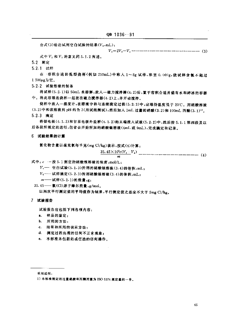 QB 1036-1991 工业用三聚磷酸钠(包括食品工业用)氯化物含量t的测定电位滴定法