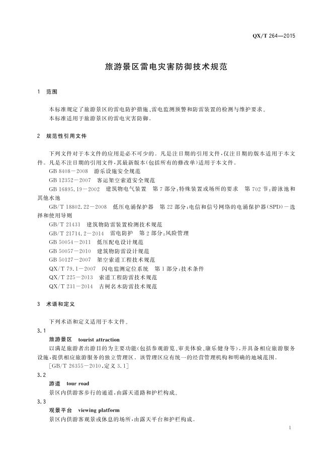 QX/T 264-2015 旅游景区雷电灾害防御技术规范