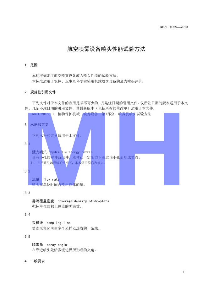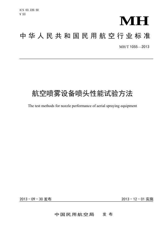 MH/T 1055-2013 航空喷雾设备喷头性能试验方法